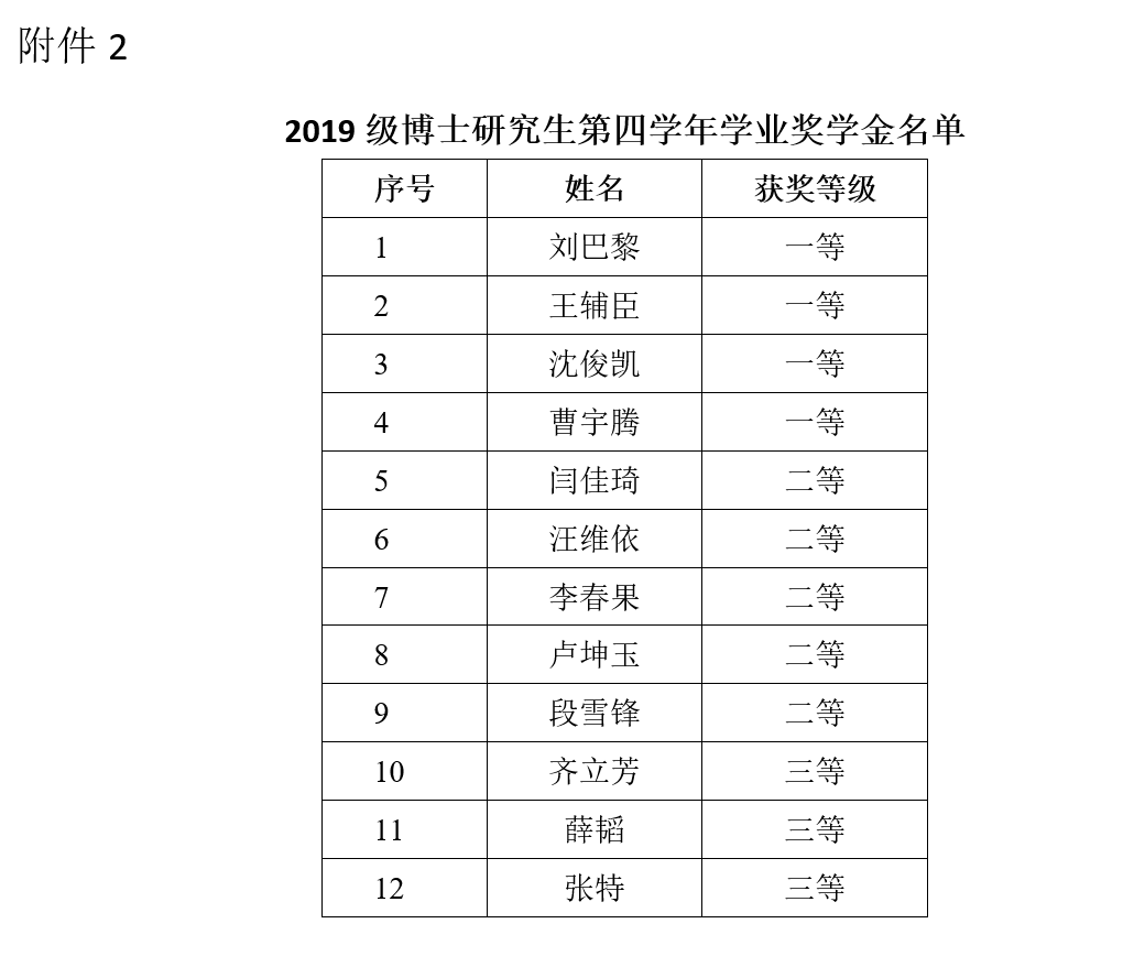 2. 2019級博士研究生第四學年學業獎學金名單