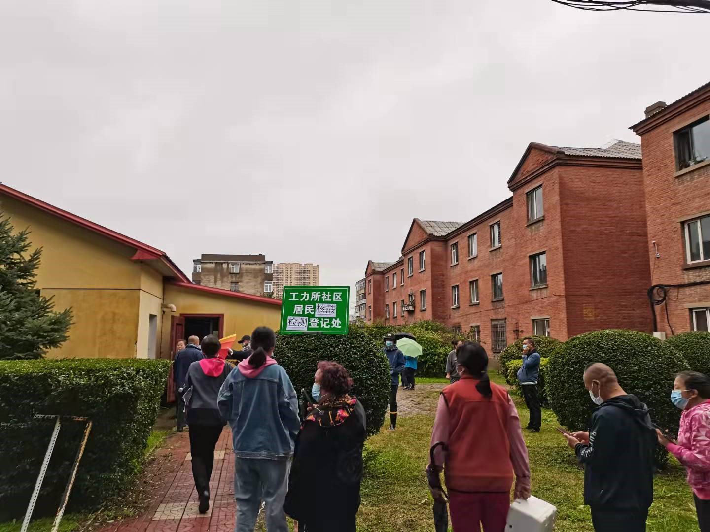 工力所社區居民多已年長,且身體狀況不佳,長時間排隊體力也吃不消。所黨委第一時間部署為社區提供座椅,供居民排隊等候時臨時休息。工作人員長時間指揮維持現場秩序,嗓子干啞,所黨委要求立即調配擴音器、引導線等,以緩解工作壓力。國慶期間有雨,又緊急增配雨衣、雨鞋,以免影響檢測工作。有力保障核酸檢測工作如期開展,第一時間筑起了疫情防控的第一防線。