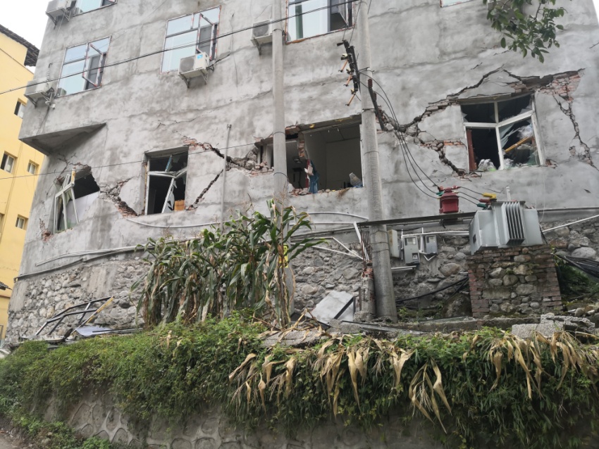 康定線科考組在磨西鎮考察了房屋的震害,重點關注了張貼紅色破壞標識的房屋。房屋主要類型以底層框架磚混結構為主,包含少量的框架結構、磚木結構等,其中磚混結構房屋破壞多集中在1層,上部樓層破壞較輕微,且部分房屋的破壞程度比較嚴重,房屋完全無法使用。